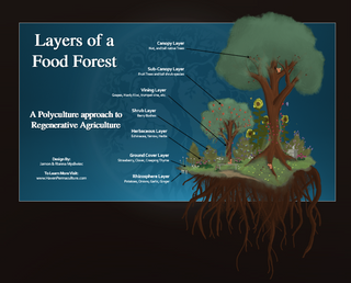 A Food Forest mimmicks the Natural forest edge to the ecosystem in which it is built. Through Permaculture Design, We can create Agriculturally productive Perrenial Food supplies of Fruits, and Veggies, integrated with water catchment and automation, Functional Access, and Key structure placement property wide.